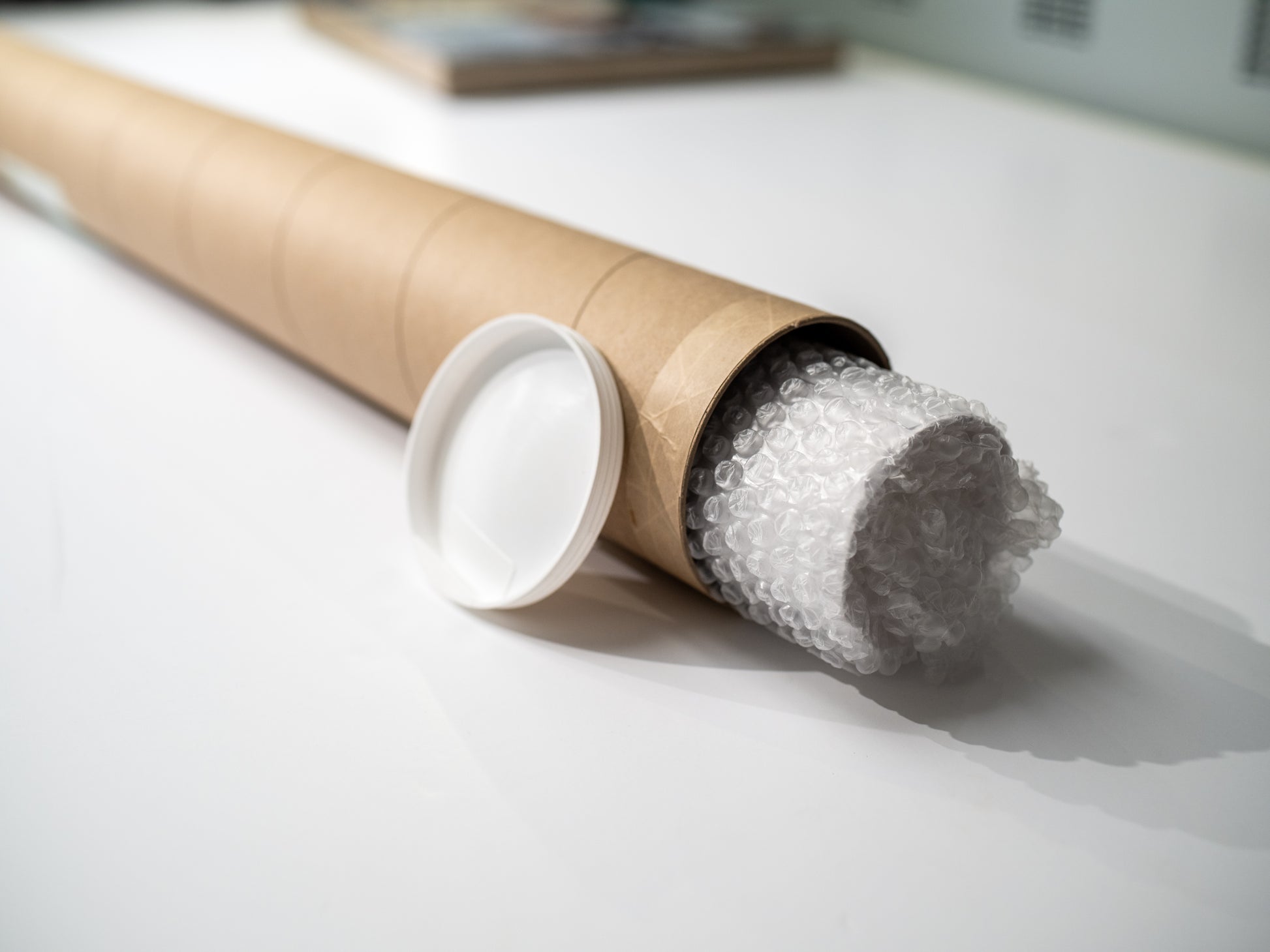 - Tube: The giclée is rolled with archival glassine and paper, then with bubble wrap for additional cushioning, and lastly sealed in a sturdy shipping tube. (For US-based customers, the charge of this selection is built into the price of the item, and is therefore the default. For international customers, a handling fee of US $40 will be added at checkout, along with the carrier’s live shipping rate.)